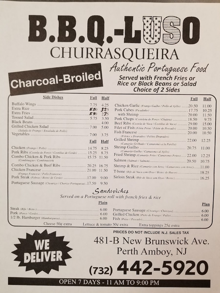 B.B.Q. Luso Churrasqueria specializes in authentic Portuguese BBQ and comforting homestyle cuisine, known for bold seasoning, generous portions, and consistently satisfying dishes. Their signature grilled chicken has become a standout favorite, alongside a menu of classic comfort plates made with care. Whether dining in or ordering out, guests can expect hearty, flavorful meals that deliver on quality and comfort.